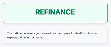 A deterministic decision tool that evaluates refinancing using amortization schedules, net present value, and transparent assumptions — not rules of thumb.